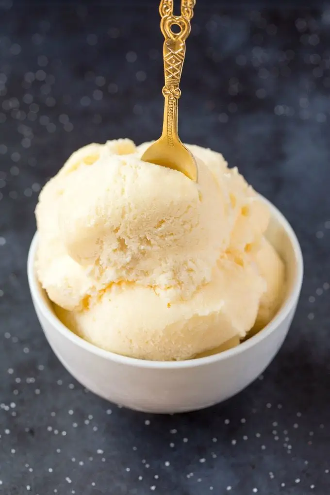 За сладоледа са необходими суроватъчен протеин или казеин, кофичка извара, един банан и 200 мл мляко. Бананът и изварата се пасират. Добавят се 200 мл мляко, за да не се получи прекалено гъста смес. След това към сместа се добавят 1 до 2 лъжички протеин на прах. Пасират се отново докато изчезнат и най-малките парченца. Сместа се излива в подходяща формички и се поставя директно на студено. След 2 часа ще имате изкусително вкусен протеинов сладолед, който съдържа над 35г белтъчини, ниски въглехидрати и средно количестно мазнини. Ако млякото и изварата са обезмаслени, то мазнините се свеждат до абсолютен минимум.